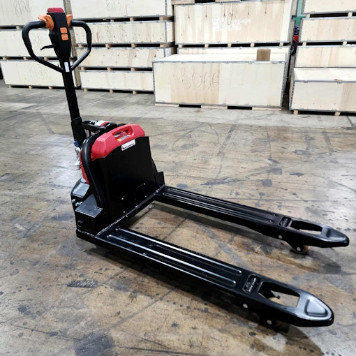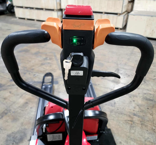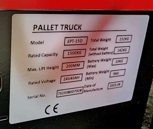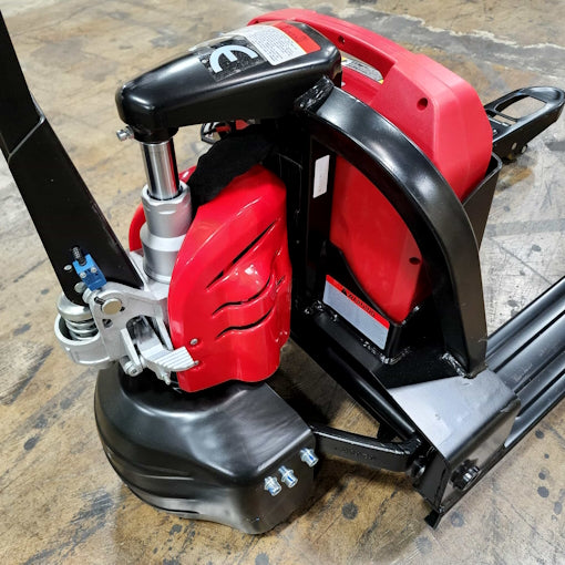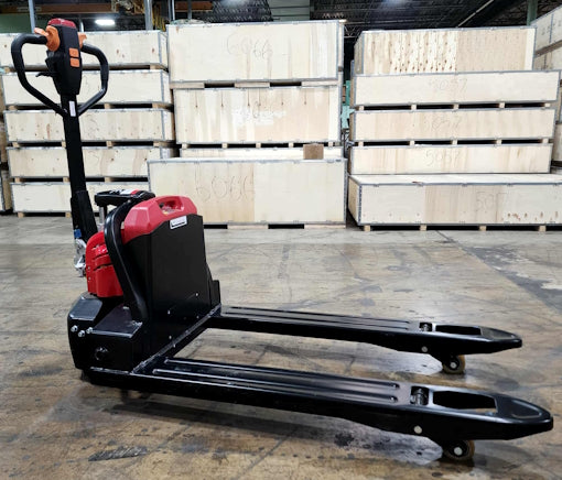 The EPT-15D is a compact, high-efficiency electric pallet truck designed for smooth, low-effort pallet handling in warehouses, retail environments, and loading operations. Equipped with a powerful 0.75 kW DC drive motor and a durable steel frame, this unit delivers reliable lifting performance, tight maneuverability, and exceptional operator control.
