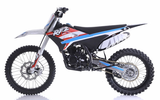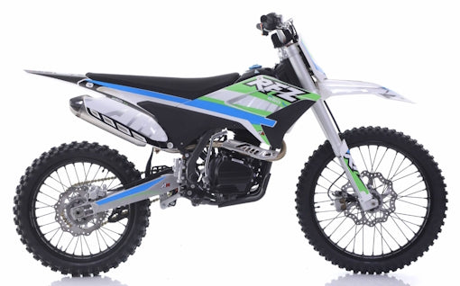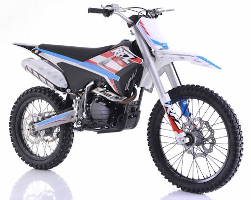 The Apollo 250cc 4-Stroke Dirt Bike delivers strong off-road performance with dependable power and durability. Featuring a 16.1HP air-cooled engine, electric and kick start, and a smooth 5-speed manual transmission, it provides excellent control on trails and rugged terrain. Adjustable inverted front forks and rear suspension ensure responsive handling, while hydraulic disc brakes offer reliable stopping power. Built with a heavy-duty steel frame, aggressive off-road tires, and 13.5 inches of ground clearance, this dirt bike is designed for riders seeking power, control, and reliability for serious off-road riding.