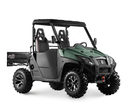 Experience the perfect blend of power and utility with the 800cc UTV 2 Seater Golf Cart 4x4 Utility Vehicle EFI W/Dump - Avalanche 800, a versatile 4x4 UTV designed to conquer any challenge. At its core is a robust 59HP, 800cc V-Twin engine, delivering the torque you need for tough jobs and thrilling trail rides. Navigate with ease thanks to standard Electric Power Steering and On-Demand 4WD. This fully loaded machine comes standard with a 3500lb winch, a hydraulic-assisted dump bed, a hard top roof, and a full tilting windshield, making it the ultimate partner for both work and play right from the start.