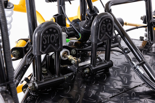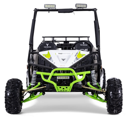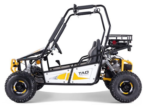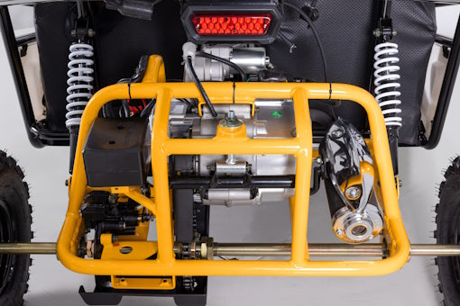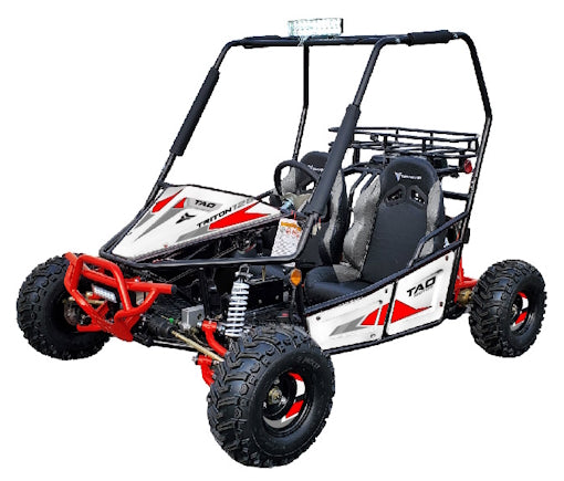 Durable. Affordable. Safe. Those are just a few things that come to mind when describing the all new Triton 125. A fresh take on our mid-size go kart, the Triton 125 will exceed customer expectations with its eye-catching design, superior safety attributes, and overall durability. The adjustable driver’s seat can accommodate those taller and shorter riders with the central hand shifter close in reach. Not lacking in looks, the Triton comes in catchy color options and is equipped with two-toned stylish seats.