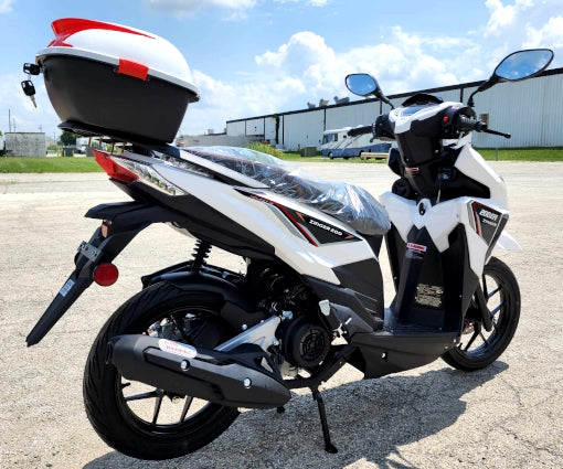 200cc 4 Stroke EFI Gas Moped Scooter Fully Assembled W/ LED Lights - ZINGER 200 WHITE is Fully Automatic & features Hydraulic Front disc brakes, Rear Drum Brakes and so much more!