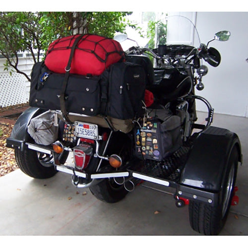 This Do-It-Yourself Motorcycle or Scooter Trike Kit allows you to easily and cheaply convert your Motorcycle or Scooter into a Trike in just minutes! It is fully adjustable to the width, height, and length. It fits around the accessories of your bike, allowing you to customize it to your liking.